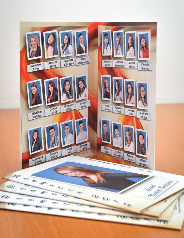 Albume de absolvire realizate in diverse variante, aveti expuse cateva modele, acestea se pot aranja in functie de dorinte. Toate fotografiile sunt prelucrate si retusate. Albumele de absolvire sunt realizate pe hartie fotografica in genul celor de nunta, cu pagini groase, rezistente in timp. Preturile includ si fotografierea care se face cu aparatura profesionala.